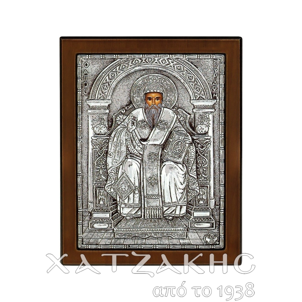 ΕΙΚΟΝΑ ΑΣΗΜΙ 925° ΑΓΙΟΣ ΣΠΥΡΙΔΩΝ 17 Χ 23 CM