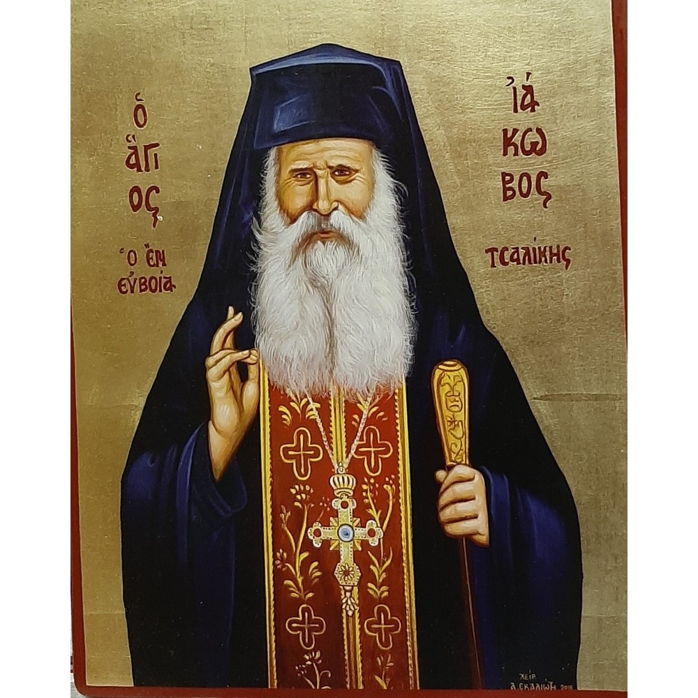 ΕΙΚΟΝΑ ΧΕΙΡΟΠΟΙΗΤΗ ΑΓΙΟΣ ΙΑΚΩΒΟΣ ΤΣΑΛΙΚΗΣ ΜΕ ΦΥΛΛΟ ΧΡΥΣΟΥ ΑΓΙΟΓΡΑΦΙΑΣ