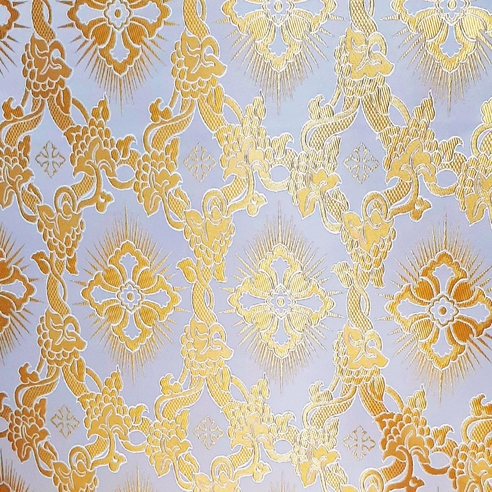 ΙΕΡΑΤΙΚΟ ΥΦΑΣΜΑ ΣΤΟΦΑ 180CM ΦΑΡΔΟΣ ΛΕΥΚΟ-ΧΡΥΣΟ