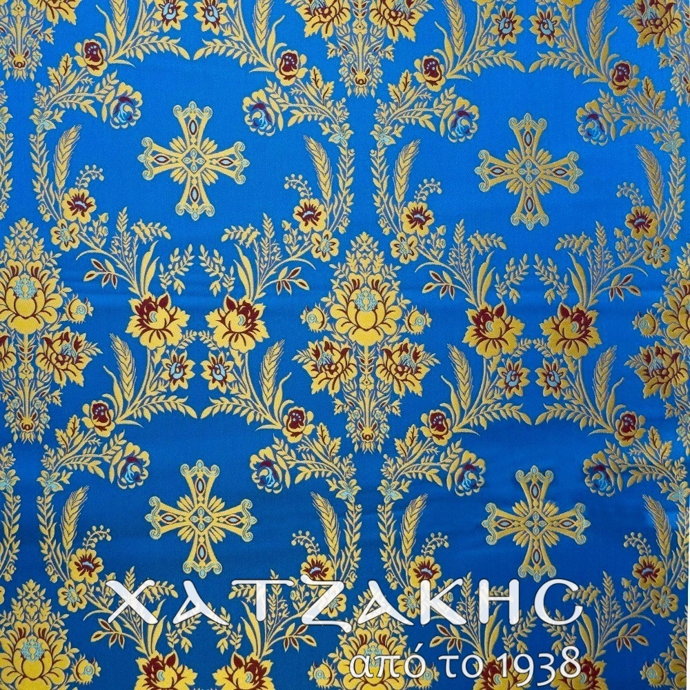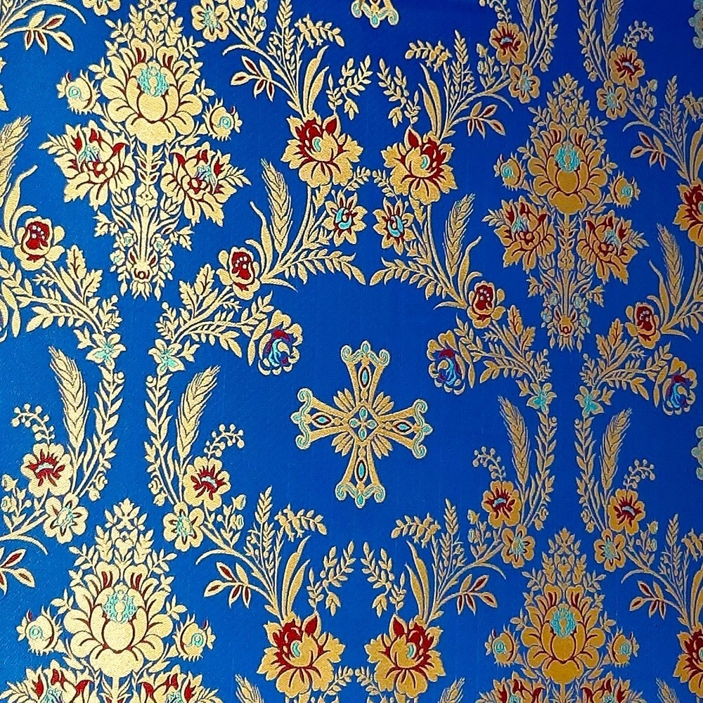 ΙΕΡΑΤΙΚΟ ΥΦΑΣΜΑ ΣΤΟΦΑ 180CM ΦΑΡΔΟΣ ΜΠΛΕ-ΧΡΥΣΟ