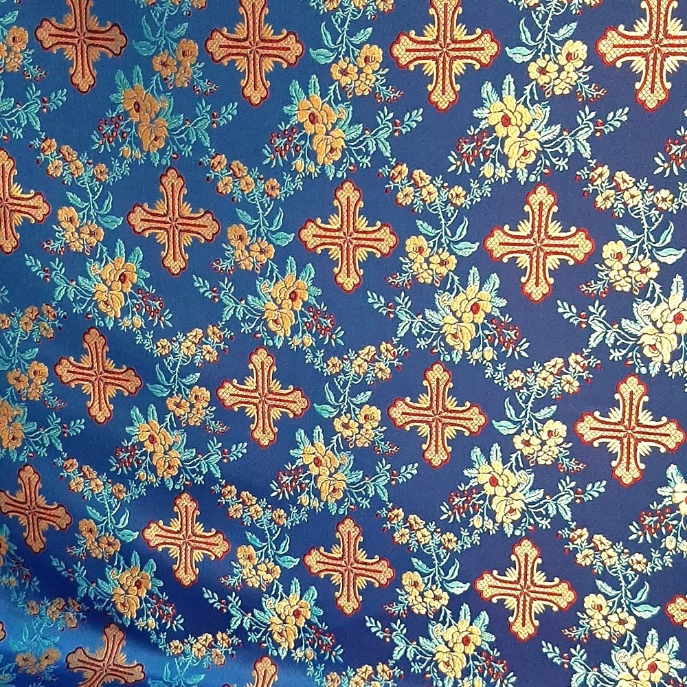 ΙΕΡΑΤΙΚΟ ΥΦΑΣΜΑ ΣΤΟΦΑ 180CM ΦΑΡΔΟΣ ΜΠΛΕ-ΧΡΥΣΟ