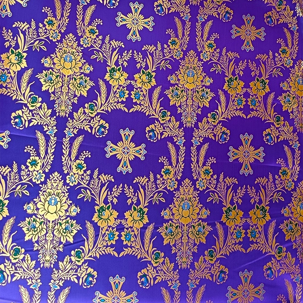 ΙΕΡΑΤΙΚΟ ΥΦΑΣΜΑ ΣΤΟΦΑ 180CM ΦΑΡΔΟΣ ΜΩΒ-ΧΡΥΣΟ