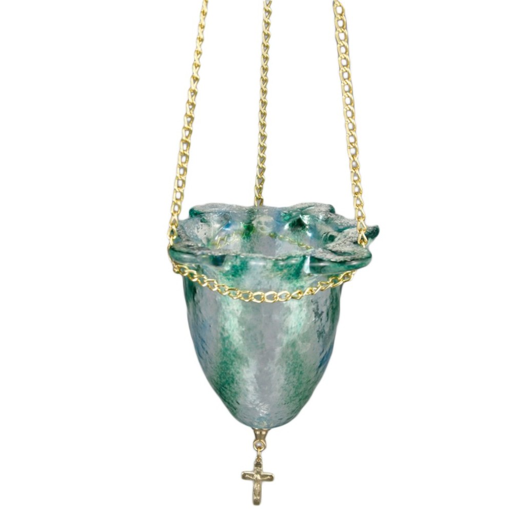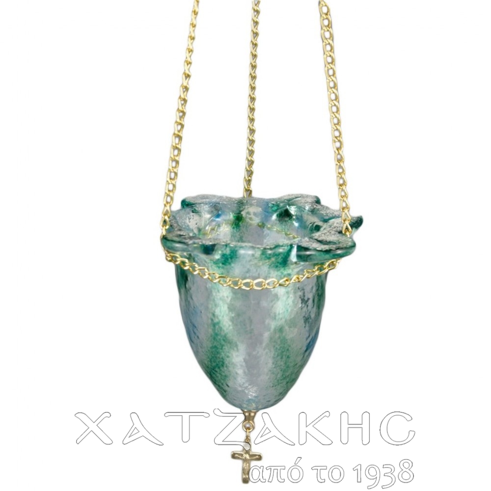 ΚΑΝΔΗΛΙ ΓΥΑΛΙΝΟ ΚΡΕΜΑΣΤΟ ΧΕΙΡΟΠΟΙΗΤΟ ΠΡΑΣΙΝΟ