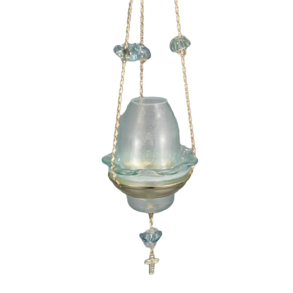 ΚΡΕΜΑΣΤΟ ΚΑΝΔΗΛΙ ΑΠΟ ΧΕΙΡΟΠΟΙΗΤΟ ΓΥΑΛΙ ΒΑΜΜΕΝΟ ΜΕ ΑΝΘΕΚΤΙΚΟ ΧΡΩΜΑ ΚΑΙ ΜΕ ΤΗΝ ΕΙΚΟΝΑ ΤΗΣ ΠΑΝΑΓΙΑΣ. ΥΨΟΣ ΓΥΑΛΙΟΥ 9 εκ ΥΨΟΣ ΚΑΝΤΗΛΑΣ 55 εκ ΔΙΑΜΕΤΡΟΣ 10 εκ. ΒΑΡΟΣ 300gram