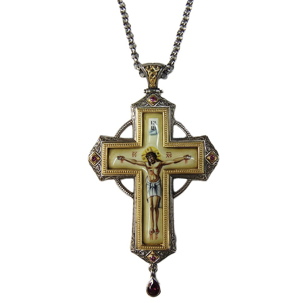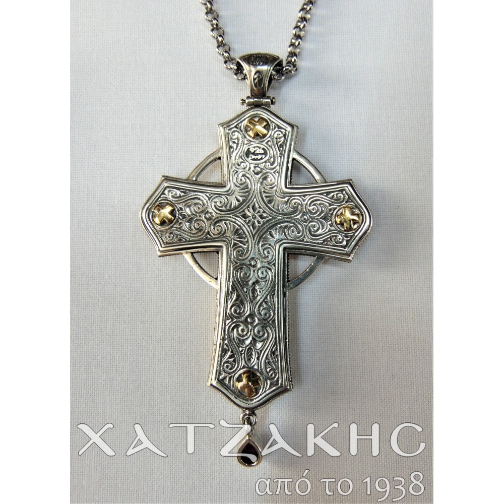 ΣΤΑΥΡΟΣ ΕΠΙΣΤΗΘΙΟΣ ΑΣΗΜΕΝΙΟΣ 925° ΜΕ ΡΩΣΙΚΟ ΣΜΑΛΤΟ