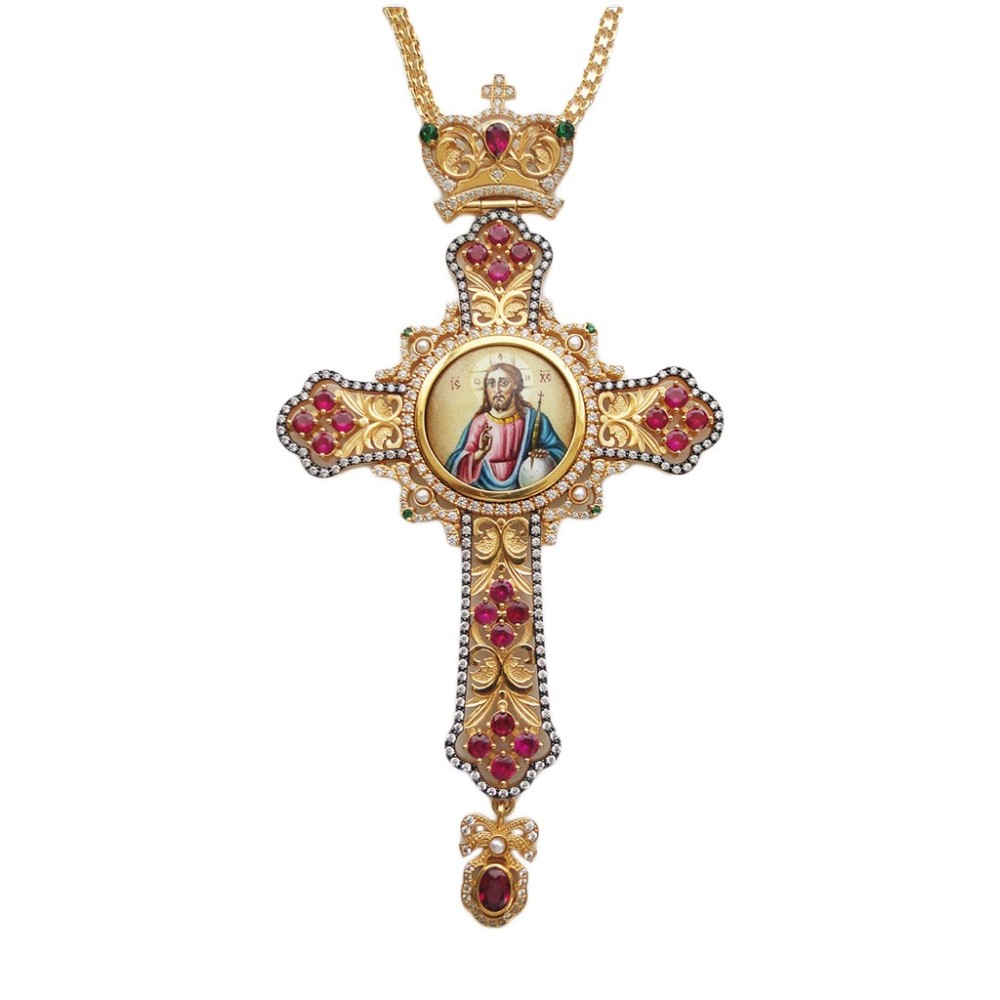 ΣΤΑΥΡΟΣ ΕΠΙΣΤΗΘΙΟΣ ΑΣΗΜΕΝΙΟΣ 925° ΜΕ ΡΩΣΙΚΟ ΣΜΑΛΤΟ