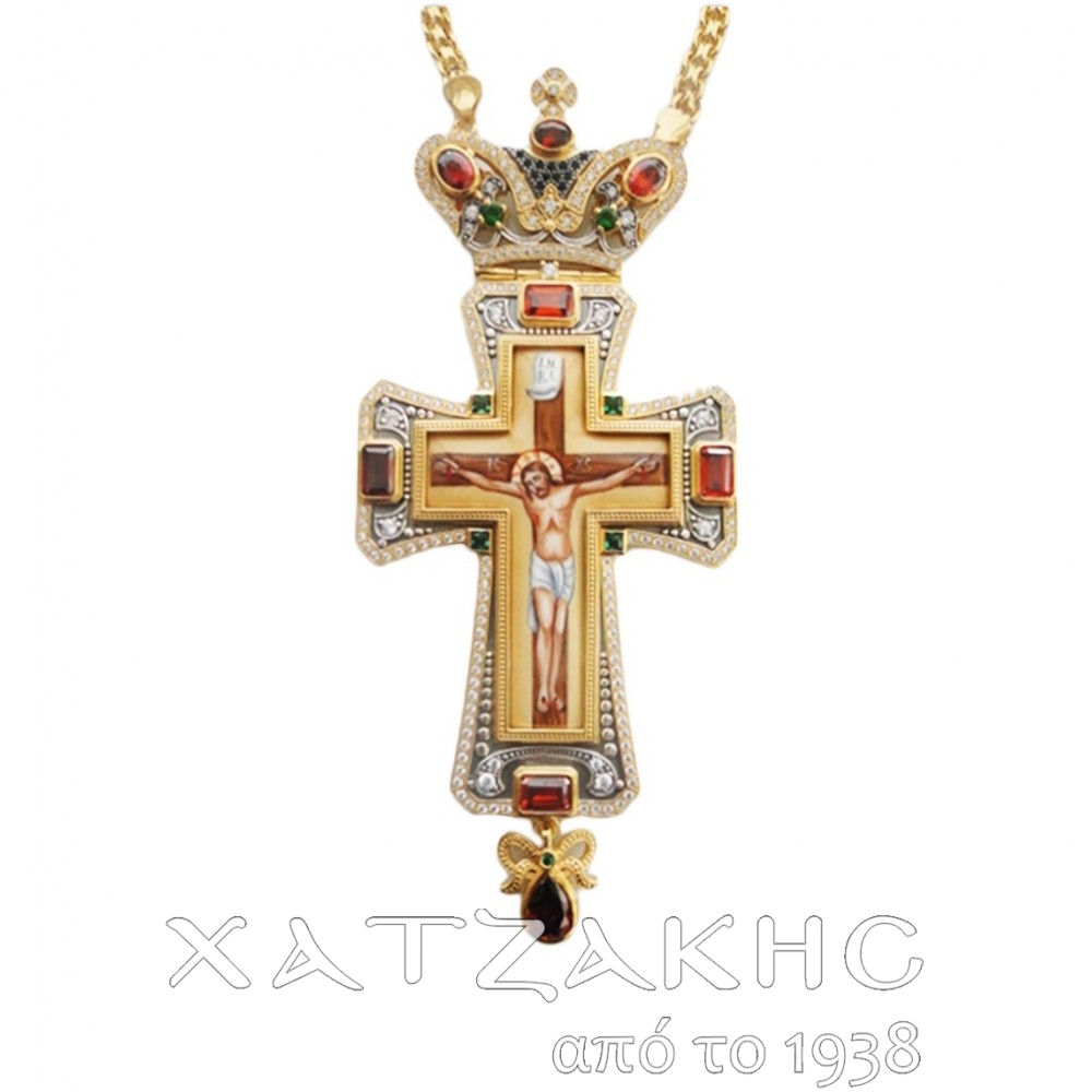 ΣΤΑΥΡΟΣ ΕΠΙΣΤΗΘΙΟΣ ΑΣΗΜΕΝΙΟΣ 925° ΜΕ ΡΩΣΙΚΟ ΣΜΑΛΤΟ