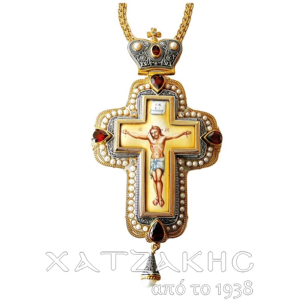 ΣΤΑΥΡΟΣ ΕΠΙΣΤΗΘΙΟΣ ΑΣΗΜΕΝΙΟΣ 925° ΜΕ ΡΩΣΙΚΟ ΣΜΑΛΤΟ
