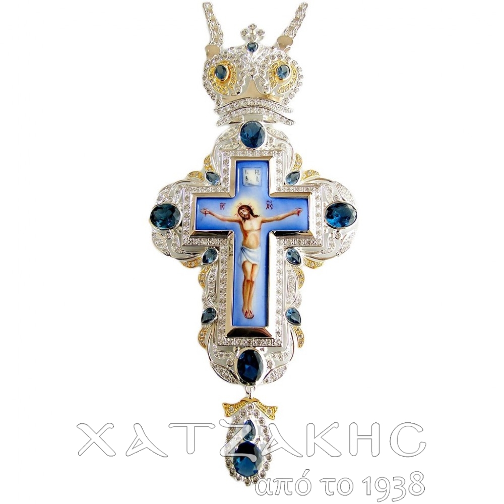ΑΣΗΜΕΝΙΟΣ ΕΠΙΣΤΗΘΙΟΣ ΣΤΑΥΡΟΣ 925° ΜΕ ΡΩΣΙΚΟ ΣΜΑΛΤΟ