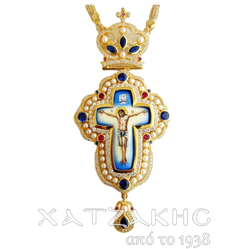 ΑΣΗΜΕΝΙΟΣ ΕΠΙΣΤΗΘΙΟΣ ΣΤΑΥΡΟΣ 925° ΜΕ ΡΩΣΙΚΟ ΣΜΑΛΤΟ