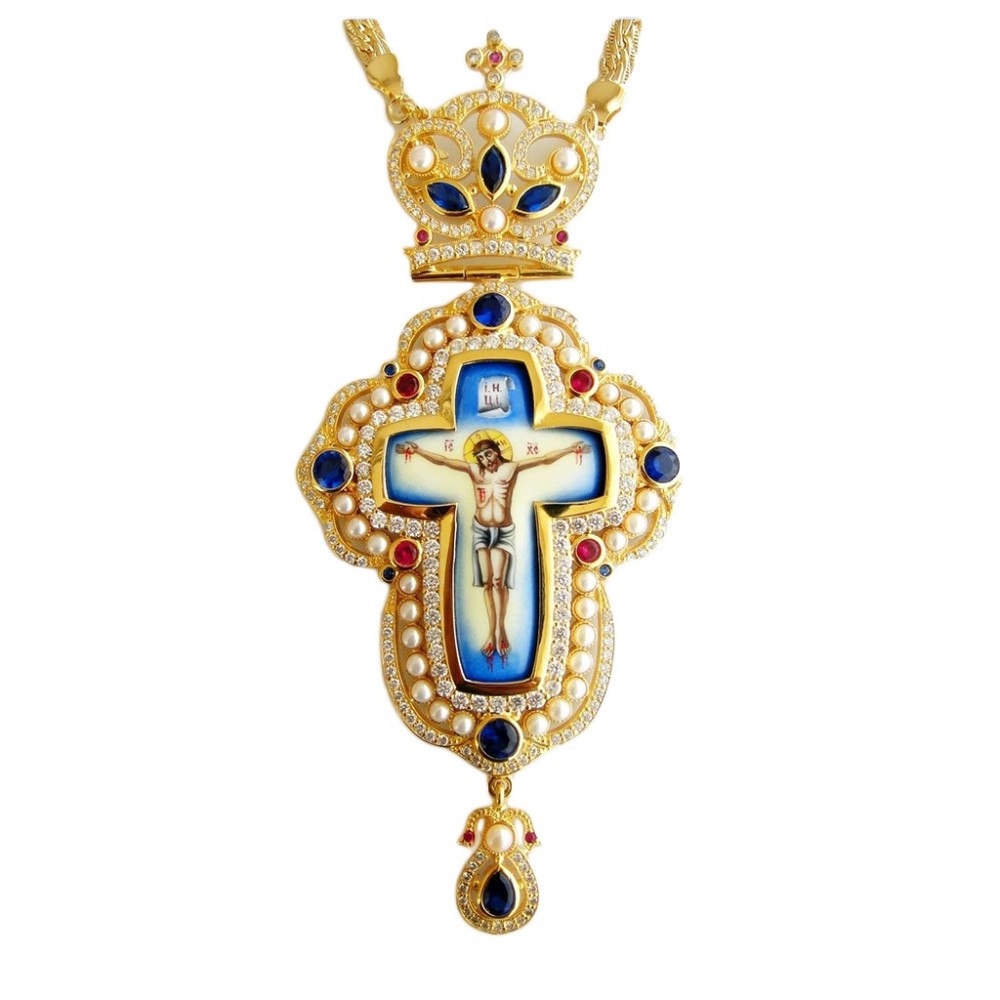 ΣΤΑΥΡΟΣ ΕΠΙΣΤΗΘΙΟΣ ΑΣΗΜΕΝΙΟΣ 925° ΜΕ ΡΩΣΙΚΟ ΣΜΑΛΤΟ