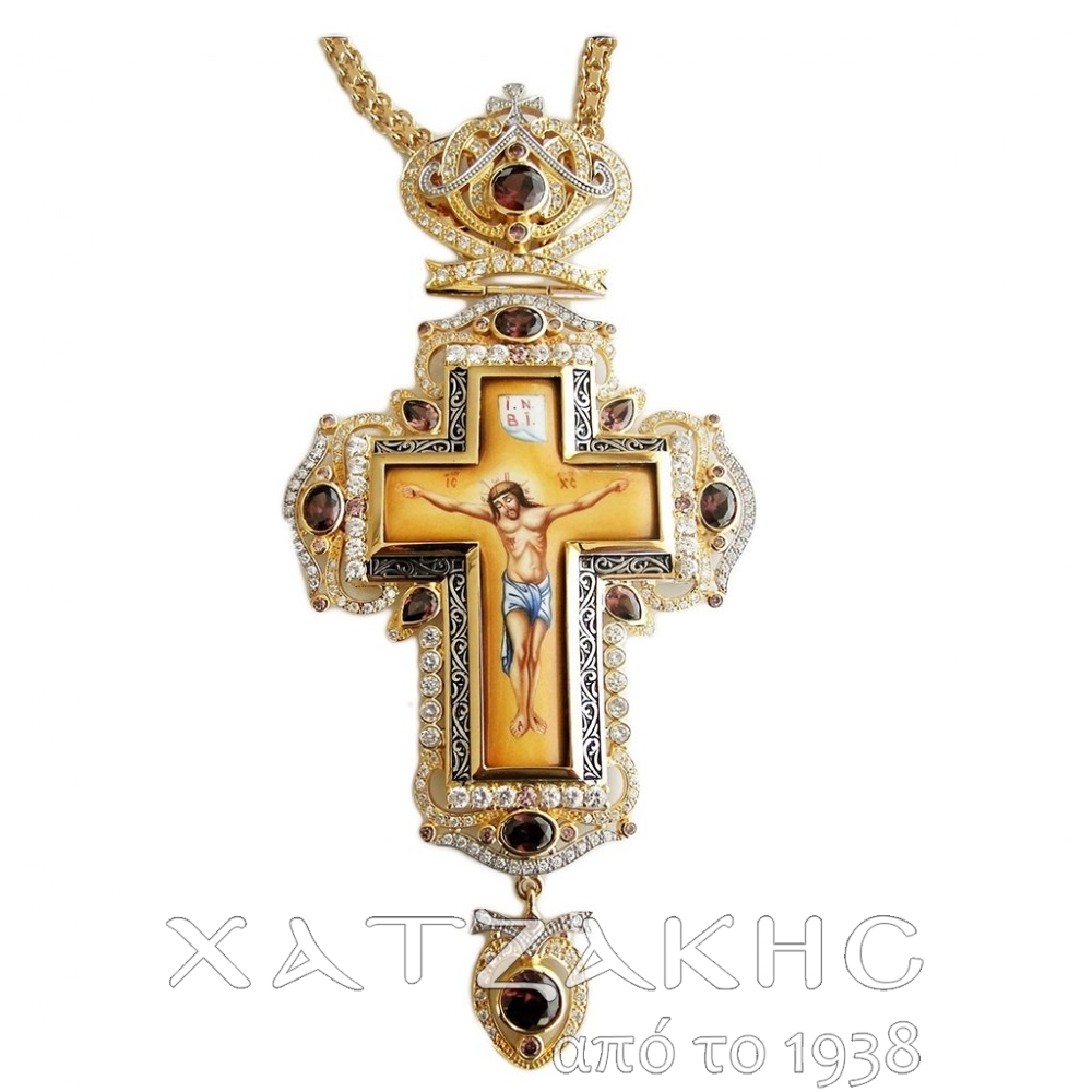 ΣΤΑΥΡΟΣ ΕΠΙΣΤΗΘΙΟΣ ΑΣΗΜΕΝΙΟΣ 925° ΜΕ ΡΩΣΙΚΟ ΣΜΑΛΤΟ