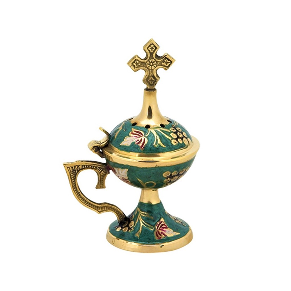 ΘΥΜΙΑΤΟ ΜΠΡΟΥΤΖΙΝΟ ΧΡΩΜΑΤΙΣΤΟ ΜΕ ΕΠΙΣΤΡΩΣΗ ΣΜΑΛΤΟΥ ΣΕ ΠΡΑΣΙΝΟ ΧΡΩΜΑ Ύψος: 13.00cm
